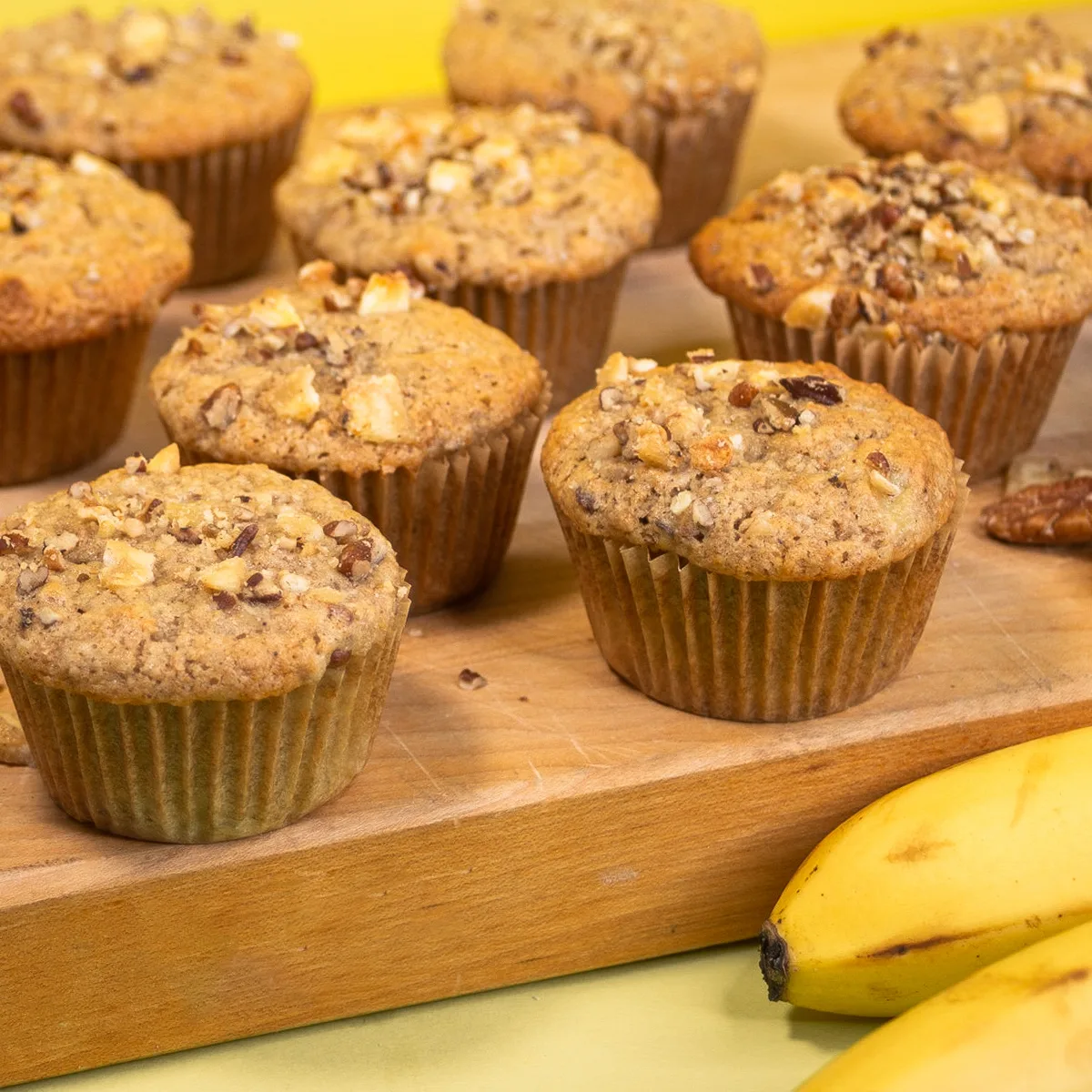 - ¾ c. nuts (walnuts or pecans). Reserve 1/4 c. for muffin tops chopped