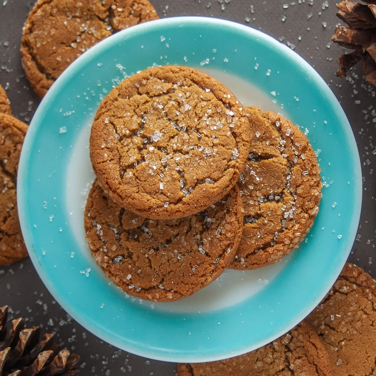 These Molasses Crisp Cookies have crispy edges, a soft, chewy center and a spicy bite from the molasses and warm spices. This is a vintage recipe my mom has made every holiday since the mid-1970’s. These cookies make for a perfect holiday food gift. They keep well and are perfect to stack on a holiday cookie tray or package them in a holiday tin for a quick hostess gift.